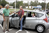 Marburger Nissan General Manager, Reid Melton hands the keys to a new Nissan Versa over to this year’s Cleveland County Fair Car Winner, Max Bridges, as wife Wanda looks on.