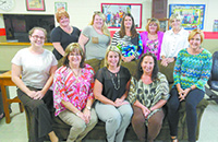 2016-2018 Sigma Chapter Officers of Alpha Delta Kappa. Seated: Co-Historian Megan Johnson, Corresponding Secretary MaeBeth Robinson, Co-President Kristen Lance, Treasurer Shelia Canipe, Co-President Jeanne Ellis. Standing: Co-Presidents-Elect Allyson Camp