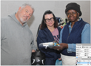 Tommy Terry, Pam Hamrick and Cathy Holmes pose for a picture at Mooresboro's Indoor Yard Sale on Saturday, February 21st.