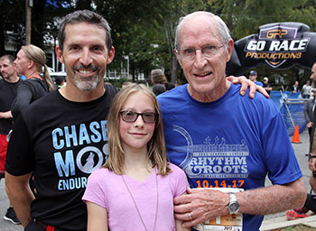 Mark, Ava and Joel Spragins, three generations of the Spragins family ran in the 8th Annual Rhythm and Roots Run 5k, Mark and his daughter Ava live in Colorado. Ava runs in her middle school cross country team and Mark went to Shelby High School. Joel is a resident of Shelby.